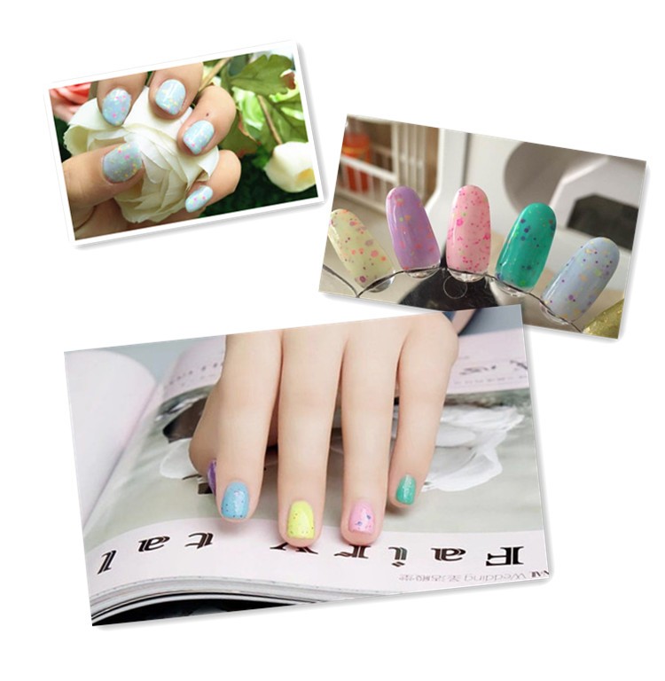 1.Easy to apply and soak off 2.Lasting at least 3 weeks on nails 3.No nicks, no chips 4.Health and Without odor 5.Always be shining |